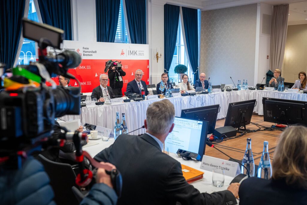 Der sächsische Innenminister Armin Schuster (CDU) hatte am Eröffnungsabend der IMK gesagt: „Wir müssen etwas tun, weil der Druck, der politische Druck, den auch ich als Innenminister habe, der ist hoch.“ Es sei eben nicht so, dass alle Menschen die gleiche Auffassung hätten wie die Fans im Stadion. Es werde sehr kritisch gesehen, dass Sicherheit rund um die Stadien nur mit Tausenden von Polizeikräften erreicht werden könne – „das ist unglaublich teuer“. Es müsse ein Weg gefunden werden, zusammen mit dem Deutschen Fußball-Bund (DFB) und der Deutschen Fußball Liga (DFL), um die Einsatzbelastung zu reduzieren.