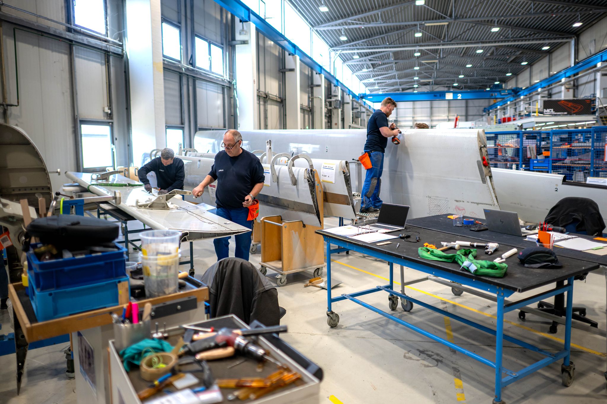 Anders als in der seriellen Produktion wissen die Mitarbeiter nie, was sie erwartet. «Das ist nicht planbar», betont Klautke. Ein Team kümmert sich um kaputte Landeklappen, andere Teams um Seiten- und Höhenruder, Flügelspitzen oder Militärflugzeuge. Einige Angestellte sind auf Reparaturen mit Kohlenstoff- und Glasfaser spezialisiert.