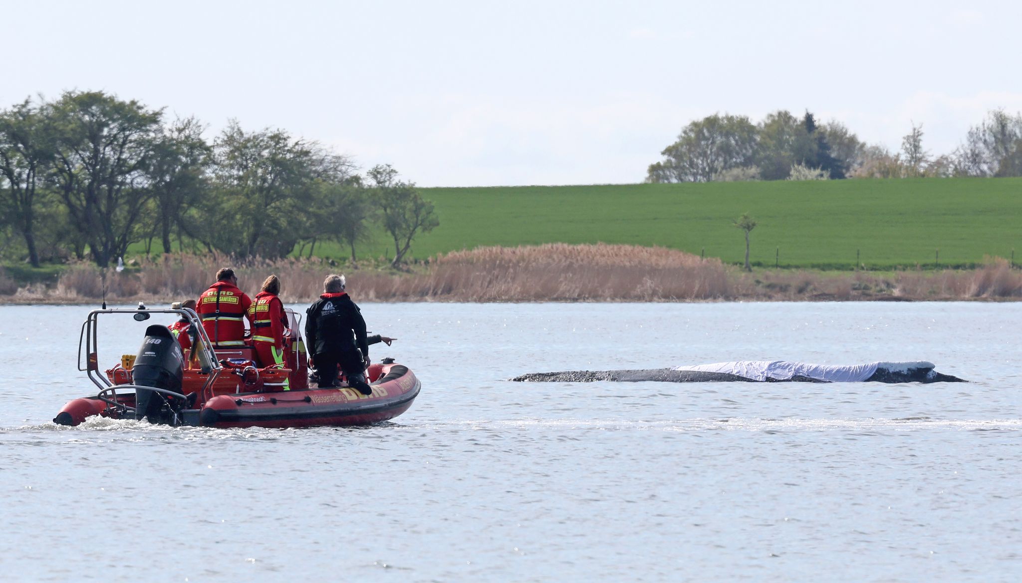 «Wir versuchen, das so schonend wie möglich zu machen, und das ist nur eine Unterstützung.» Der Wal werde nicht überbeansprucht, versicherte Tönnies. Oliver Bartelt von der Deutschen Lebens-Rettungs-Gesellschaft (DLRG), die die Initiative unterstützt, sagte, der Wal werde sich «floatend bewegen». Das Tier werde nicht aufliegen. «Er wird über keinen Sand gezogen.»