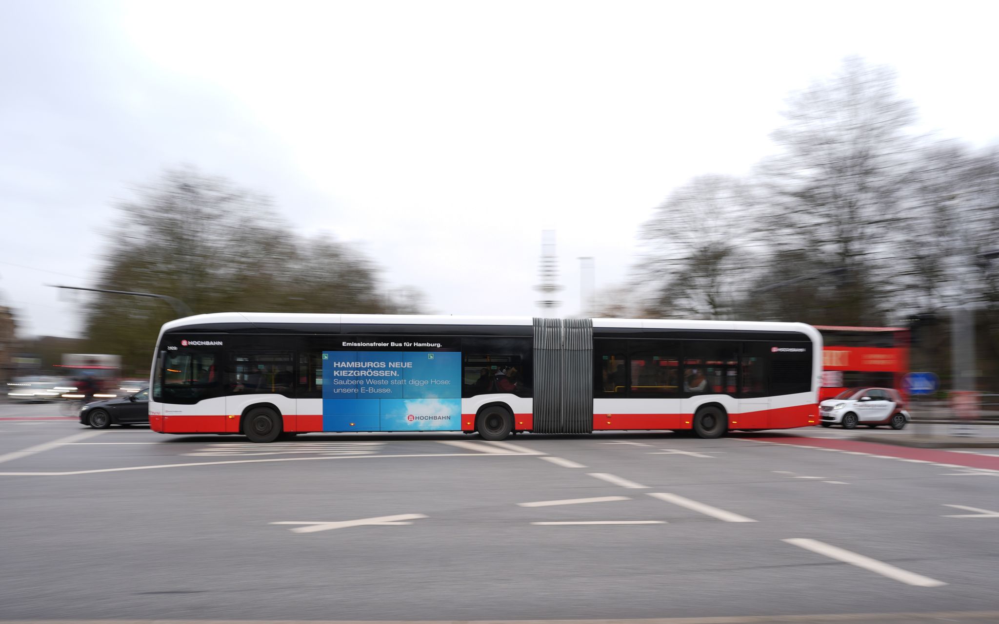 Ein Bus der Hochbahn fährt über die Kreuzung am Stephansplatz. (Archivbild) Marcus Brandt/dpa