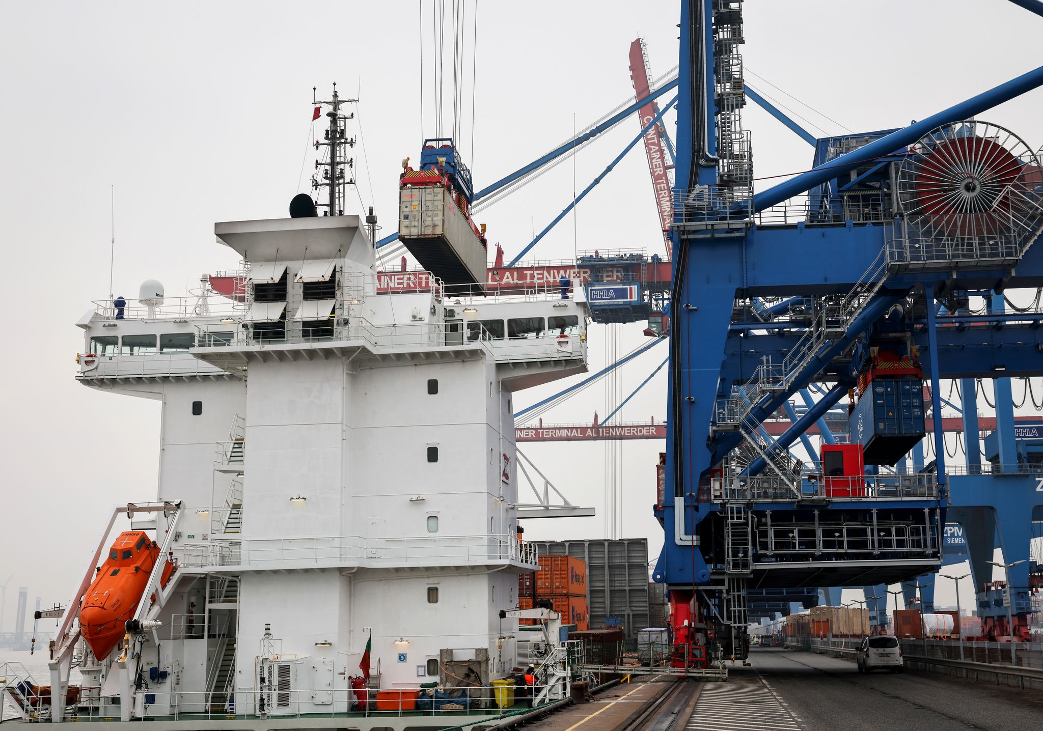Die neuen Containerbrücken hat die Schweizer Firma Liebherr hergestellt. Sie sind bis zu 120 Meter hoch. Mit den Brücken können Containerschiffe mit bis zu 16.000 Standardcontainern be- und entladen werden. Eine neue Brücke koste etwa einen niedrigen zweistelligen Millionenbetrag, sagte Eijsink.