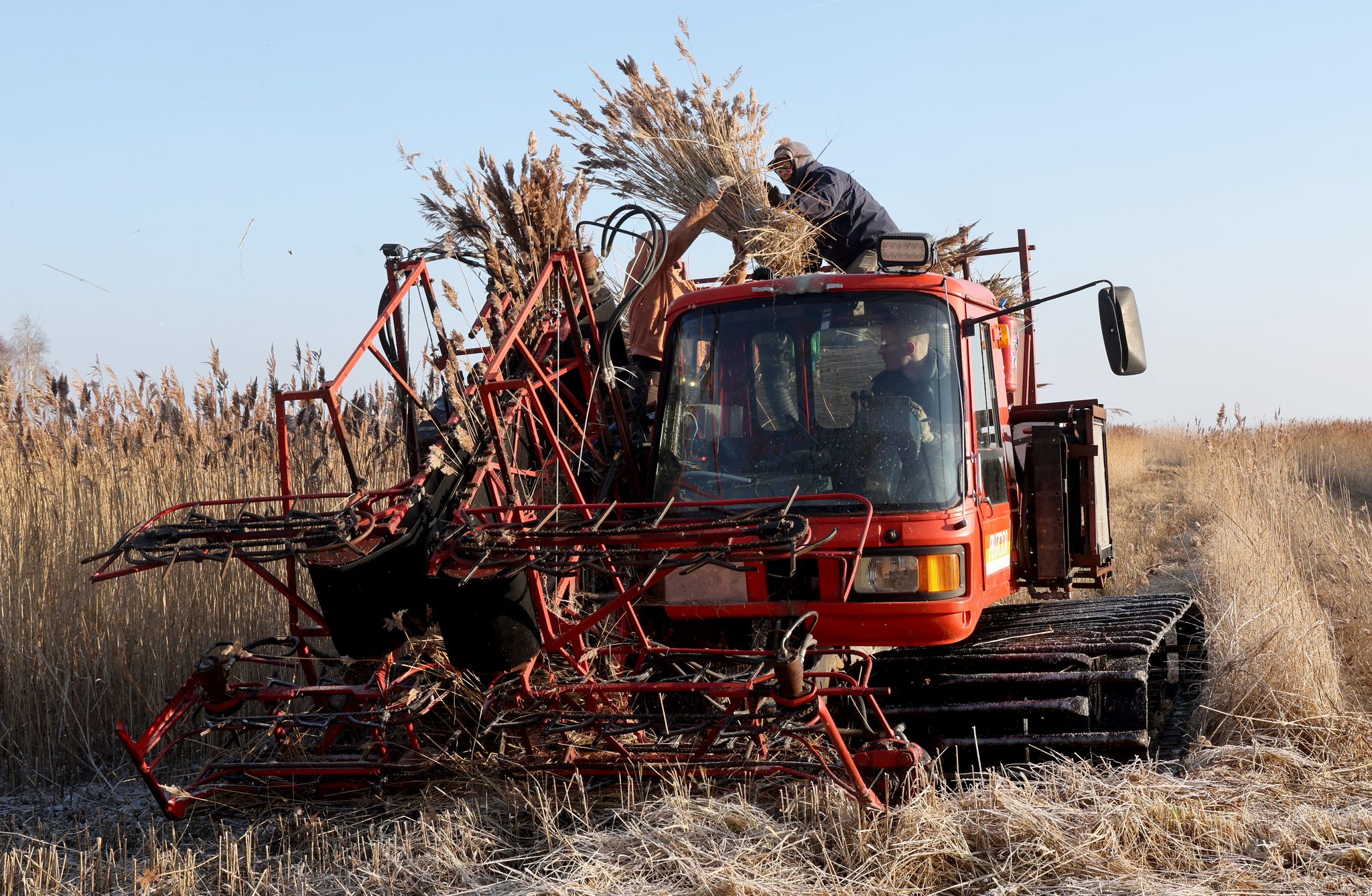 In Mecklenburg-Vorpommern ernten nur eine Handvoll Betriebe selbst. Dazu gehört auch die Rohrdachdeckerei von Ralf Betge. Er bewirtschaftet nach eigener Aussage etwa 60 Hektar auf Usedom. Ein niederländischer Kollege helfe ihm dabei und erhalte dafür einen Teil der Ernte. Allerdings könne es derzeit noch nicht losgehen bei ihm. Nach zeitweise hoch stehendem Wasser gebe es im Schilf Eis bis zu 20 Zentimeter über dem Boden. Diese 20 Zentimeter gingen ihm verloren. «Ich brauche jeden Zentimeter Länge.» Daher warte er, bis das Eis weg sei.