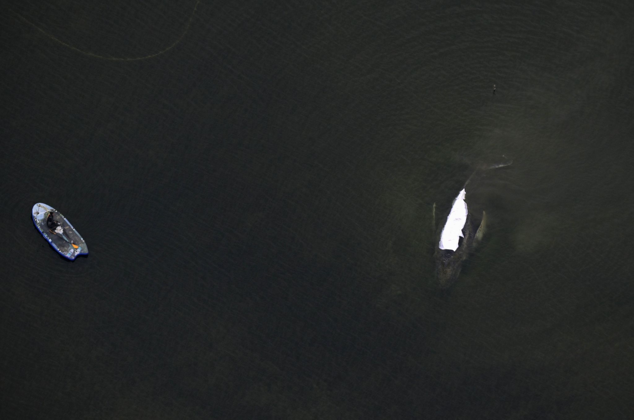 Pontons und Plane sollen den Wal tragen