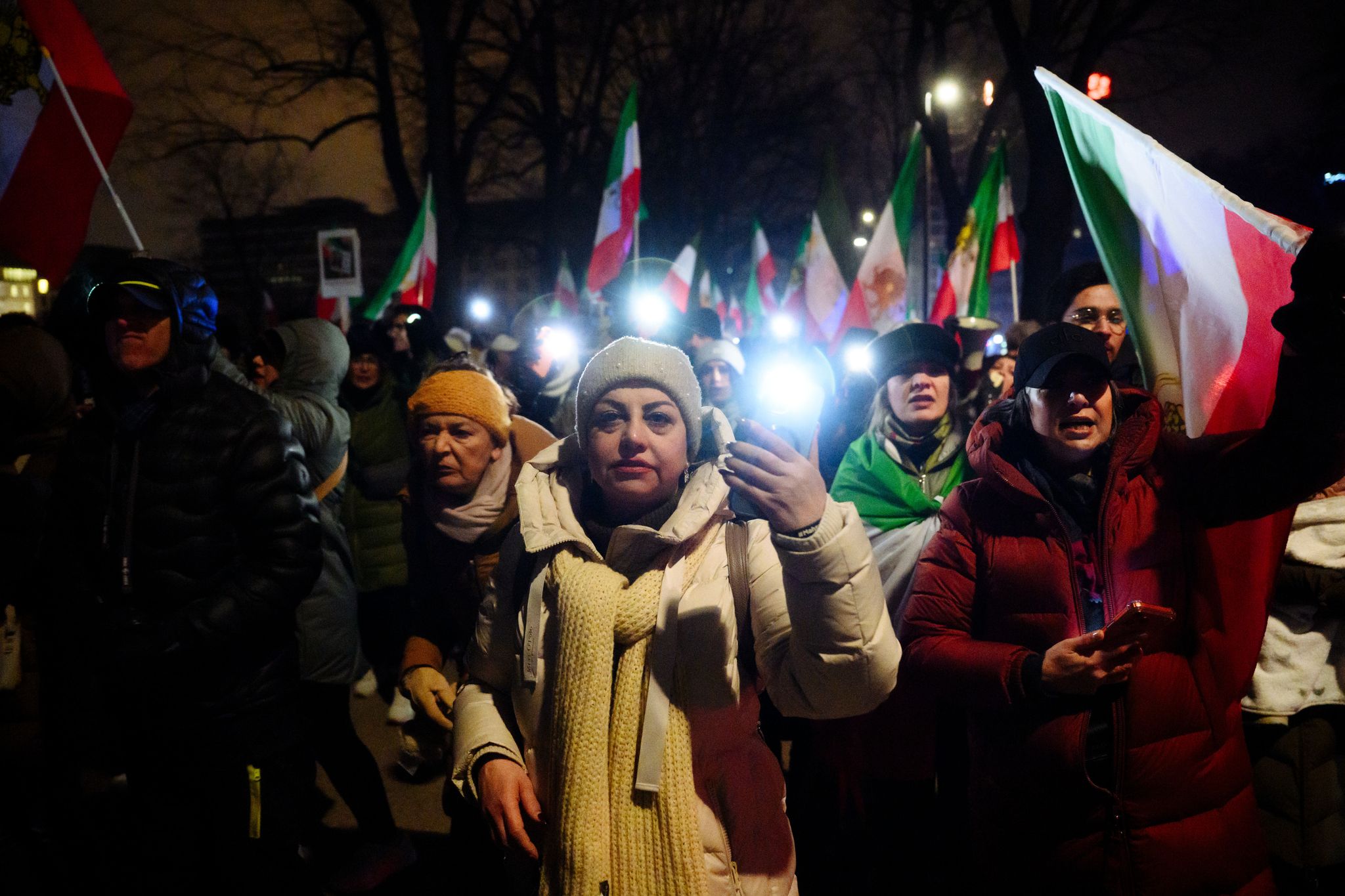 Sprechchöre skandierten «Die Mullahs müssen weg». Zudem legten die Demonstranten Blumen und Kerzen neben Fotos von Menschen ab, die nach Teilnehmerangaben während der Demonstrationen im Iran getötet wurden.