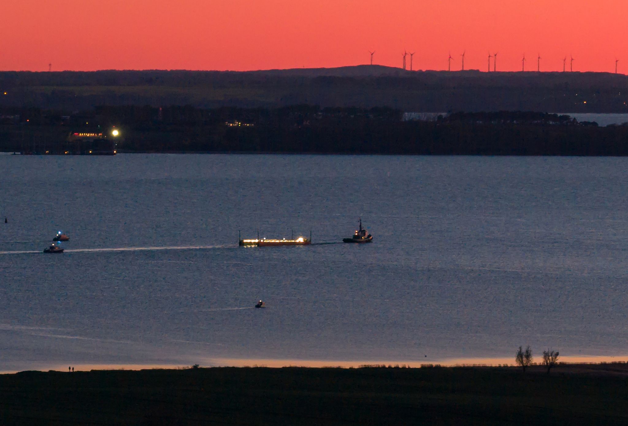 Auf Livestreams war zu sehen, wie der mit Wasser gefüllte Lastkahn, mit dem der Wal in die Nordsee gebracht werden soll, von kleineren Booten aus der Kirchsee der Insel Poel heraus in die Wismarbucht gebracht wurde. Dort nahm der Schlepper «Robin Hood» ihn auf den Haken.