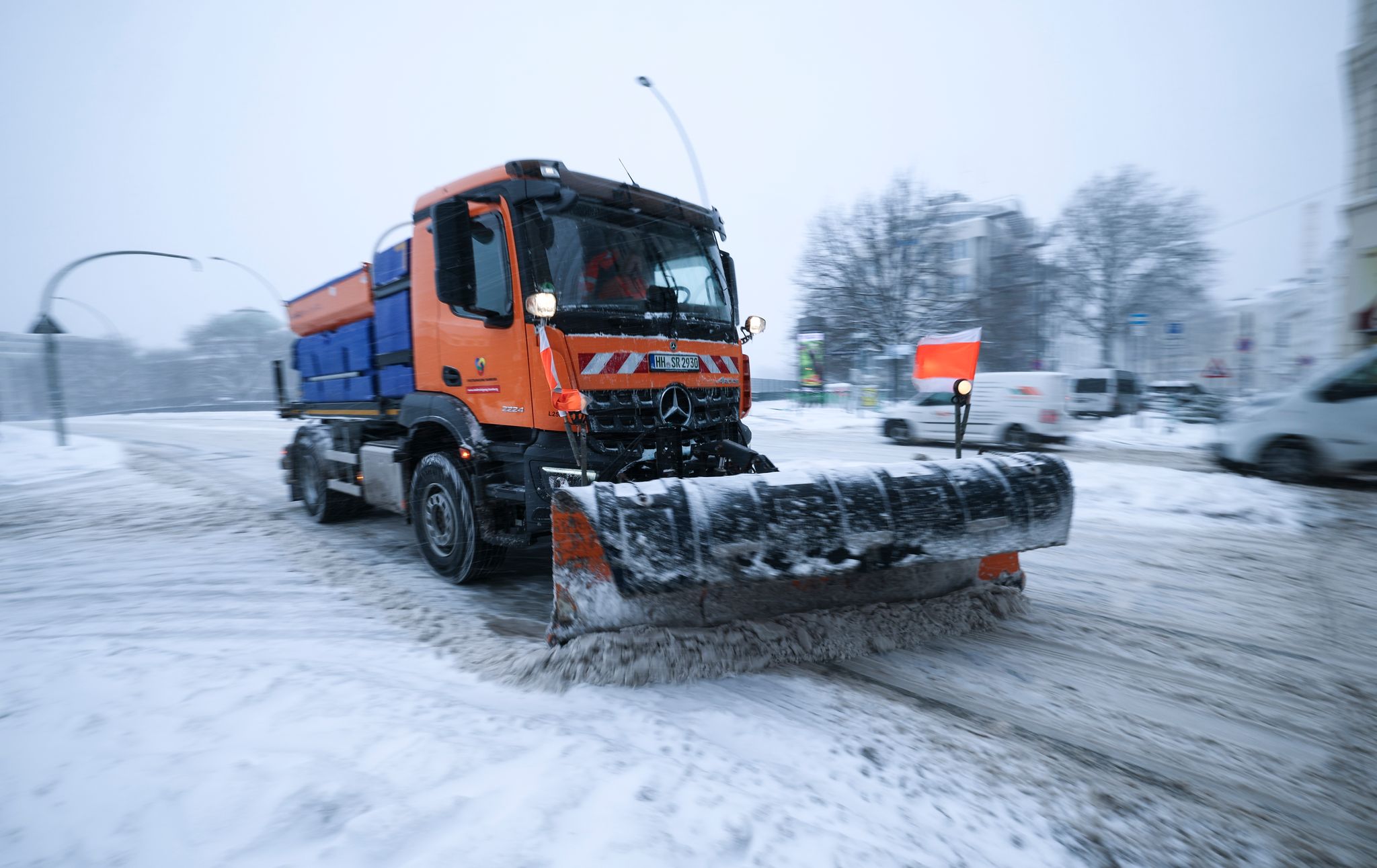 Nach dem Durchzug des Sturmtiefs «Elli» ist der Winterdienst in Hamburg erneut im Großeinsatz. In der Nacht startete die Stadtreinigung Hamburg (SRH) ab 2.00 Uhr ihren inzwischen neunten Großeinsatz in diesem Jahr. Rund 728 Einsatzkräfte mit etwa 360 Fahrzeugen waren unterwegs, um Straßen und Wege von Schnee und Glätte zu befreien.