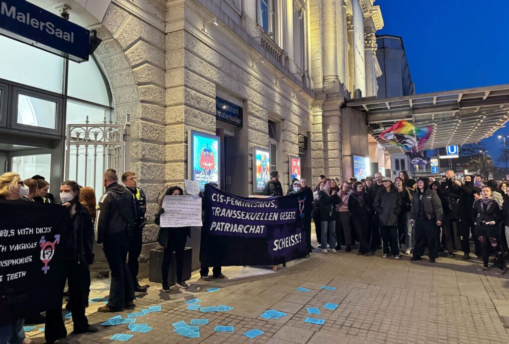 Schon vor Beginn der Lesung hatten vor dem Schauspielhaus mehr als hundert Menschen lautstark gegen die Veranstaltung protestiert und Banner gehalten. Die Protestierenden warfen Schwarzer transfeindlichen, rassistischen und ausgrenzenden „Radikalfeminismus“ vor.