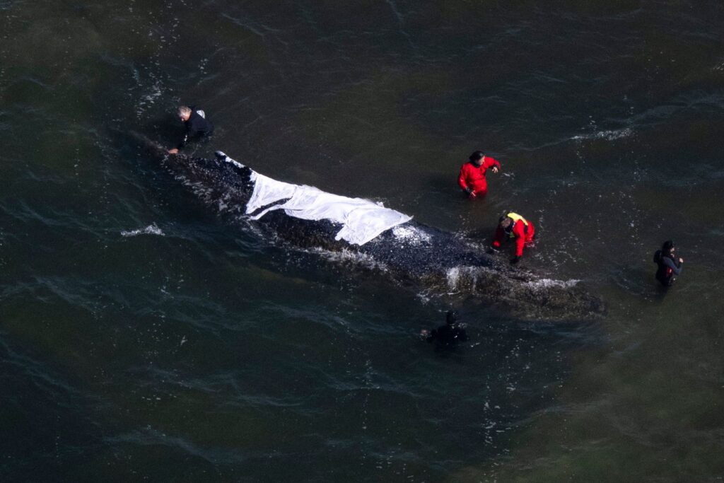 Ob der Buckelwal die Rettungsversuche überlebt, ist offen. Experten zufolge ist er stark geschwächt.